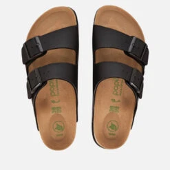A modern update on a classic, Birkenstock’s ‘Arizona’ sandals are set on EVA platform soles. Flexible Birko-Flor® uppers and has anatomically contoured cork and footbeds to provide arch support.