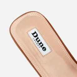 Dune ‘Loupe’ tan mule sandals, crafted from supple leather. Chunky vamp strap with cut-out inserts at either side. Resilient resin sole with low block heel. Open toe. Complete with contrast stitch detailing throughout.