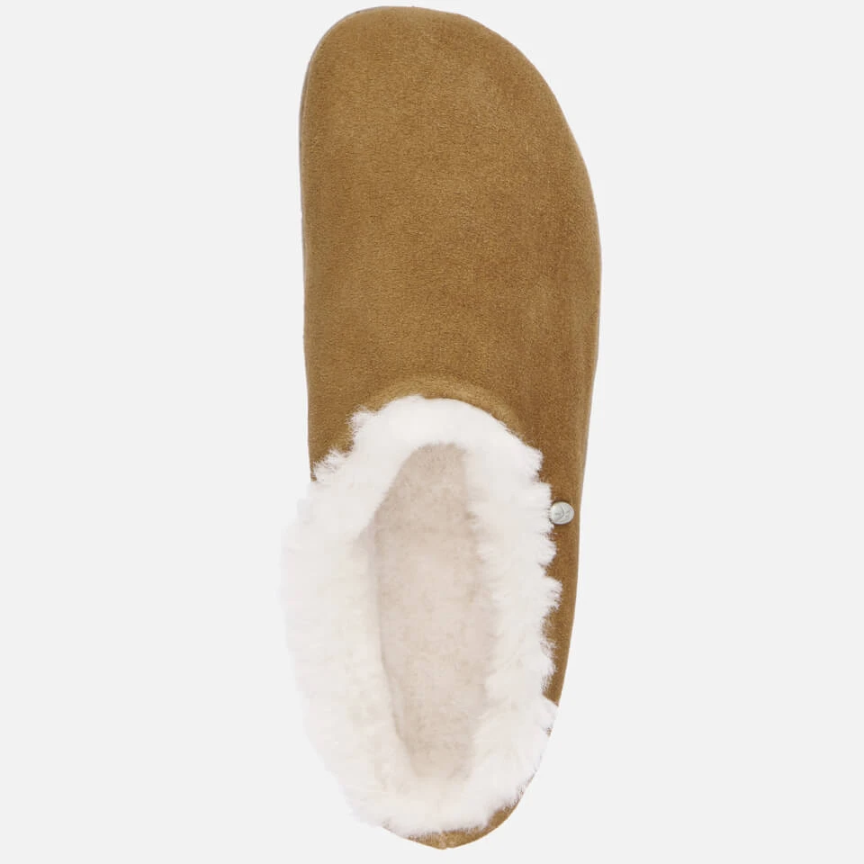 - Tan suede, cream sheepskin