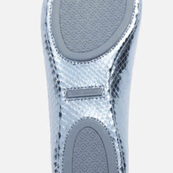 Tory Burch offers a modern take on this season’s focus on ballet pumps with the Minnie flats. Made from snake-effect leather in a blue metallic finish, its shimmering design is cut to a slim silhouette and showcases the label’s double T monogram in appliqué detail.